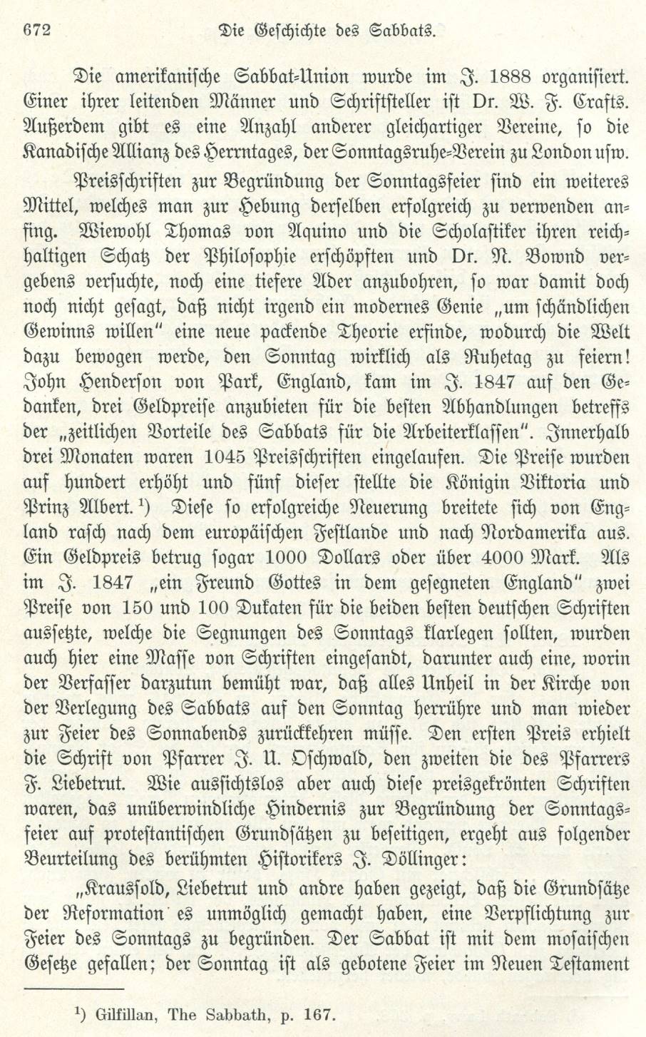 aus: ”Geschichte des Sabbatsund des Ersten Wochentagesim Lichte der Heiligen Schrift und der Geschichte von der Erschaffung der Welt bis auf die Gegenwart.”