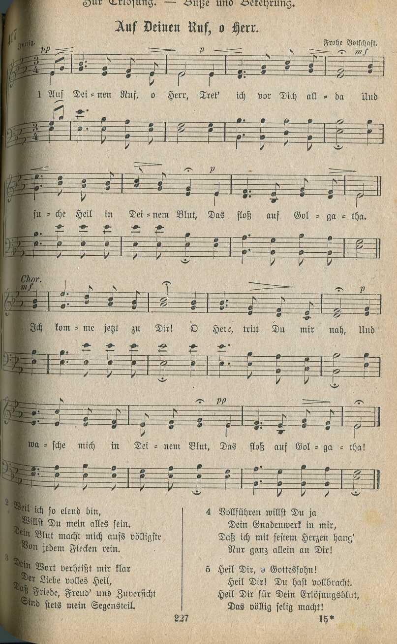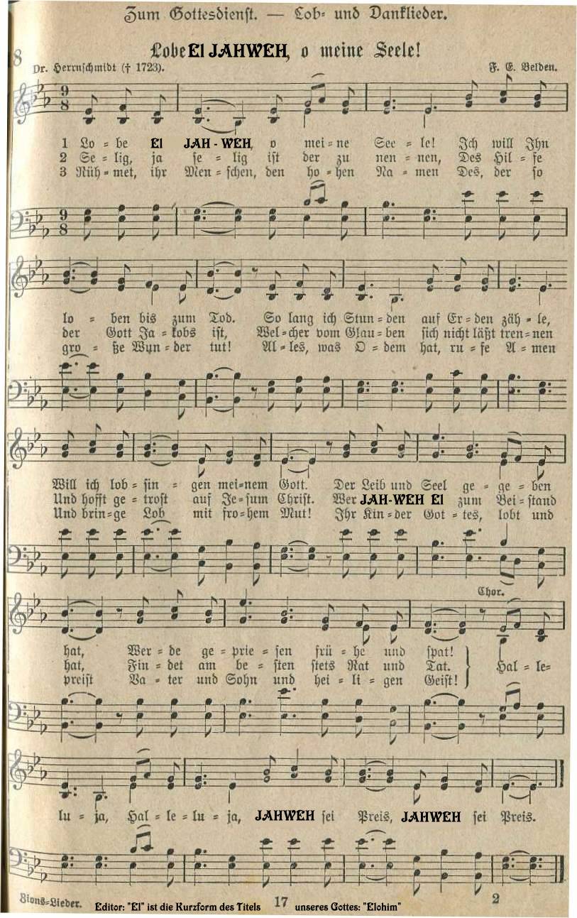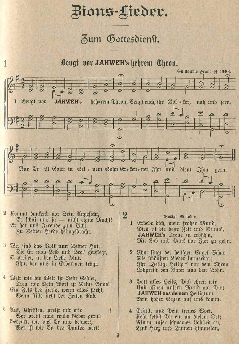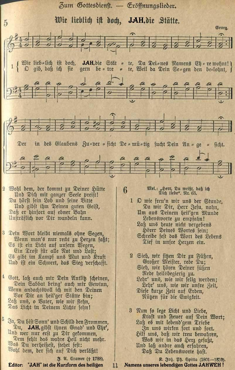 Hinweis zum adventistischen Gemeindeliederbuch in Amerika Der Text des Liedes “Holy, holy, holy, God in three persons, blessed trinity” ( deutsch: “Heilig, heilig, heilig, Gott in drei Personen, gesegnete Dreieinigkeit”) stammt ursprünglich aus dem Liederbuch der protestantischen Kirche. Die Adventpioniere änderten im Jahr 1886 diesen Text. Er lautete nun: “Heilig, heilig, heilig, Gott über allem, der die Ewigkeit regiert”. Die Gründe für diesbezügliche Veränderungen sind weiter hinten im Vorwort des deutschsprachigen Zionsliederbuches - 1893 von der Generalkonferenz der STA / Review and Herald herausgegeben - nachzulesen. Fast einhundert Jahre lang sangen die amerikanischen STA den Text dieses Liedes in Übereinstimmung mit der Bibel: “Heilig, heilig, heilig, Gott über allem, der die Ewigkeit regiert” Nachdem aber im Jahr 1980 die 27 Glaubenspunkte in Dallas neu formuliert wurden, musste auch hier eine Neuformulierung - bzw. die Rückkehr zur ursprünglichen trinitarischen Version von 1826 — vorgenommen werden. Ob man vielleicht verhindern wollte, dass die Gemeindeglieder über Ursachen und Gründe nachdenken - falls ihnen der Unterschied zwischen dem von den Adventpionieren aus biblischen Gründen veränderten Kirchenlied und den neuformulierten Glaubensgrundsätzen der STA auffällt? Seit 1985 sind die STA in Amerika zur evangelischen Version zurückgekehrt und singen nun wieder: